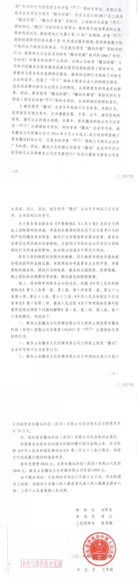 山东腾讯文化传媒有限公司,因侵犯“腾讯”商标专用权、构成不正当竞争,被济南市中级人民法院判决立即停止侵权行为,并赔偿30万元,同时认定“腾讯”为,据悉“腾讯”首次被认定为驰名商标